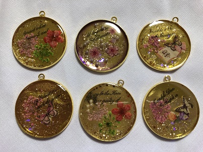 フィルム他、キラキラのラメやビーズ、押し花を詰め込んで、