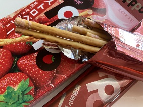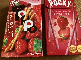 多少、ポッキーの方が、いちごの香りがやや強め。