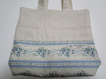 花柄のハギレと無地の生地で布バックを作ってみました。