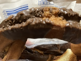 固めのドーナツにチョコがかかっています。
