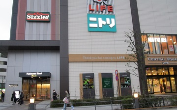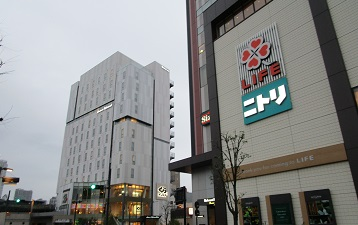 ニトリ看板の左下が<リッチモンドホテルプレミア東京スコーレ>