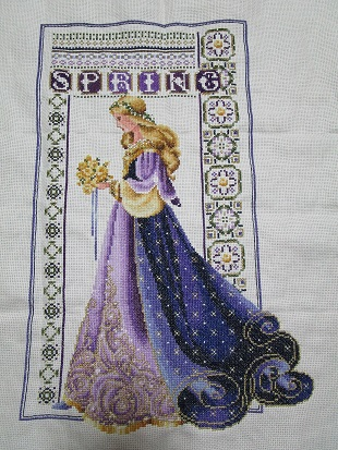 手持ちに合うものがなく、白のアイーダでステッチ。