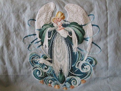 左下側のカモメの<目>は、フレンチノットステッチ。