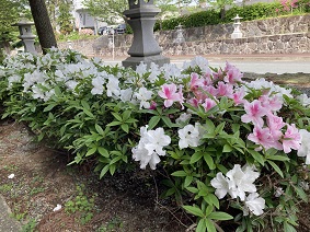 桜が終わって、ツツジ?サツキ?でしょうか。