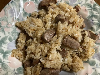 牛肉がゴロゴロ入っていたチャーハン風。